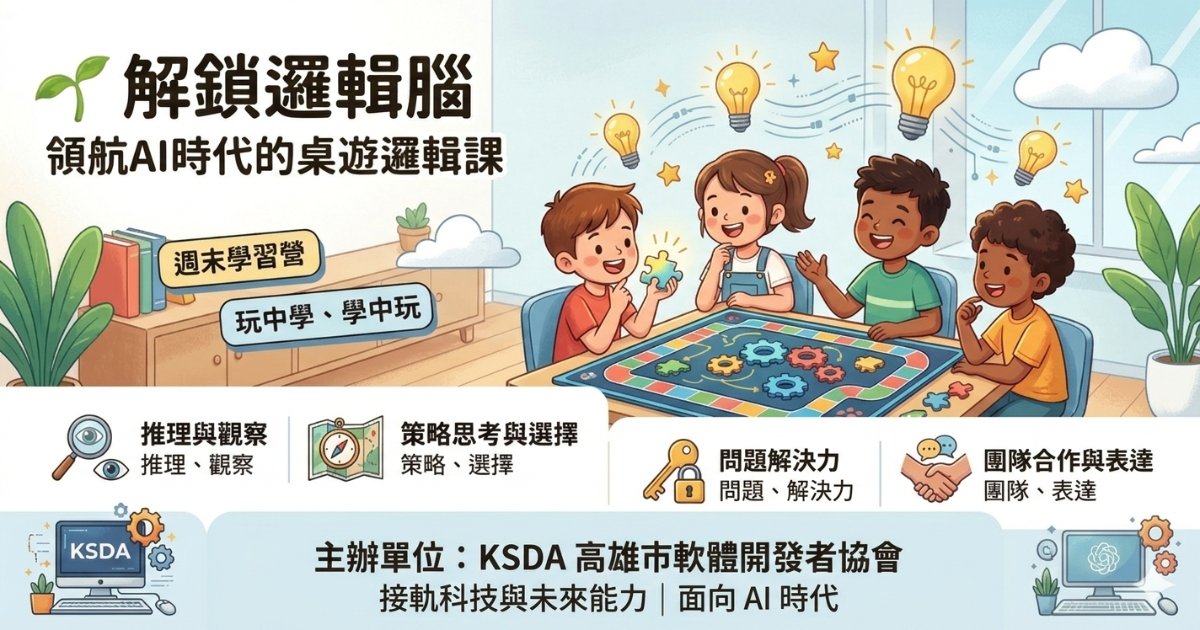更重要的是,本課程由 KSDA 高雄市軟體開發者協會主辦,擁有在地最扎實的專業師資與第一線軟體產業經驗。能將邏輯思考與真正的科技應用接軌,讓孩子學到的是「實用、可延伸到未來資訊能力」的思考方式,而不只是課本上的技巧。